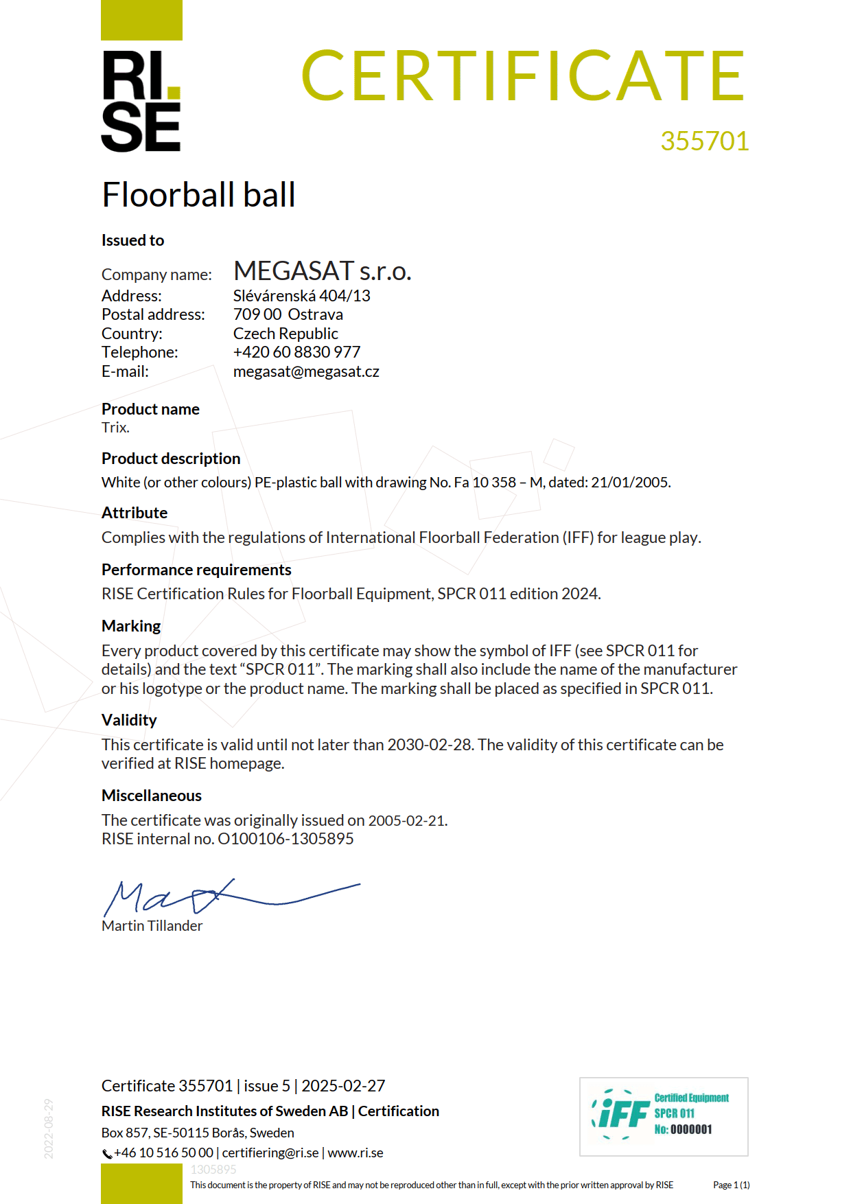 Jsme tradičním českým výrobcem míčků certifikovaných IFF.